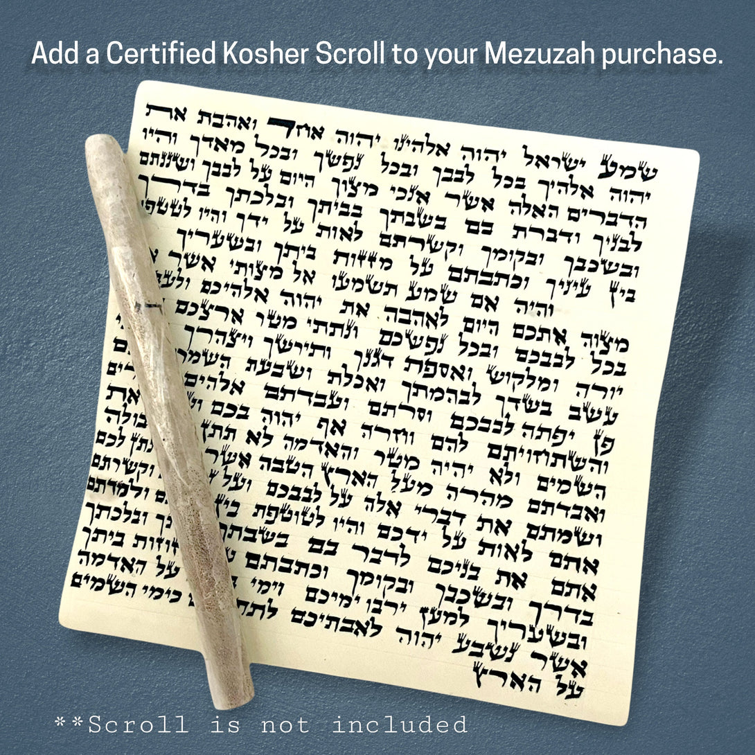 - This product does not include a Scroll. You can add-on a Certified Kosher Scroll to your order by clicking “Add Now” on the button below (Scroll size; 12cm/4.73 Inch).