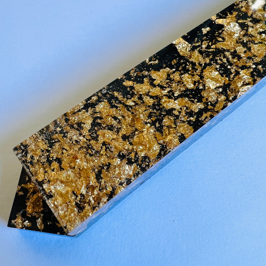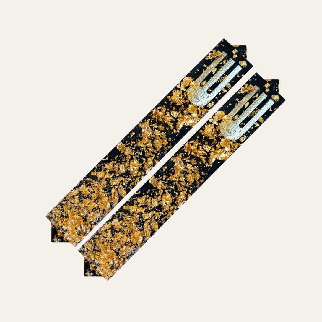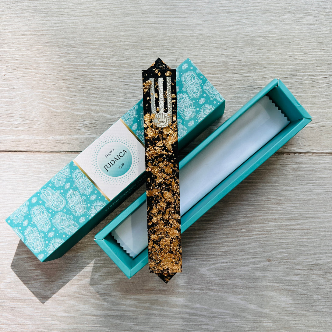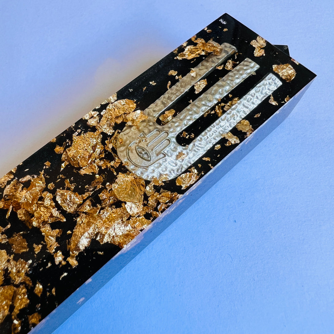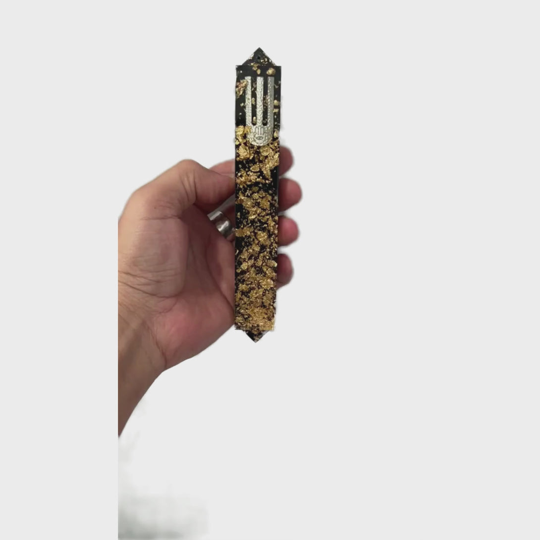 Epoxy Mezuzah in Black with a Gold Metal Flakes and Silver Accent (Set of 2)